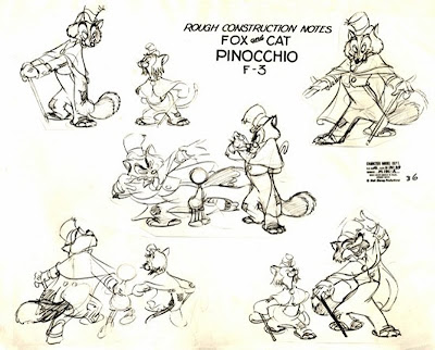 A drawing with J. Worthington Foulfellow and Gideon from the Disney movie Pinocchio (1940). I love their design!