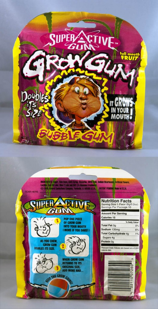 okay, same time frame, do you remember the gums that did different things? like the one that shrank and then grew, or the one that blew the bubbles that exploded EXTRA loud. they came in square chunks of two colors... I think one was white and red, one was red and yellow, and one was blue and yellow.