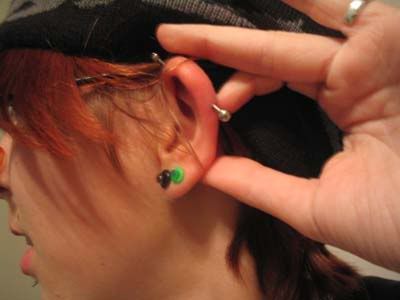 XD Here's a highschool picture of my ear - http://img.photobucket.com/albums/v.....rcings_004.jpg Christ that's old XD That's the only ear worth seeing because the industrial is just awesome. But sometimes if I sleep on that side too much it gets sore :\