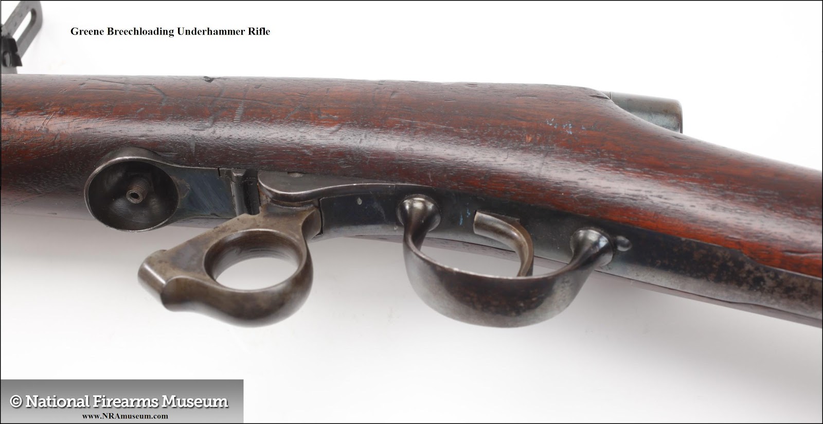 Diagram of the under hammer action in the Fehnnik musket. The cocking lever is flaired at the end out from the trigger guard for access.
