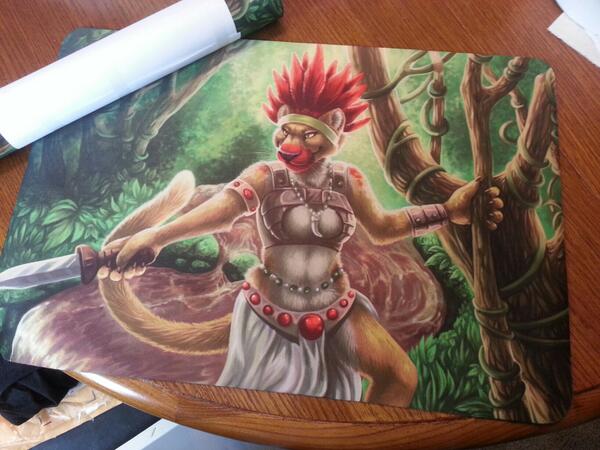 I will have 6 of these Naya ladies available for sale at Anthrocon - so if you'd like a unique playmat with a MtG-inspired cat warrior theme, be sure to stop by table M11.