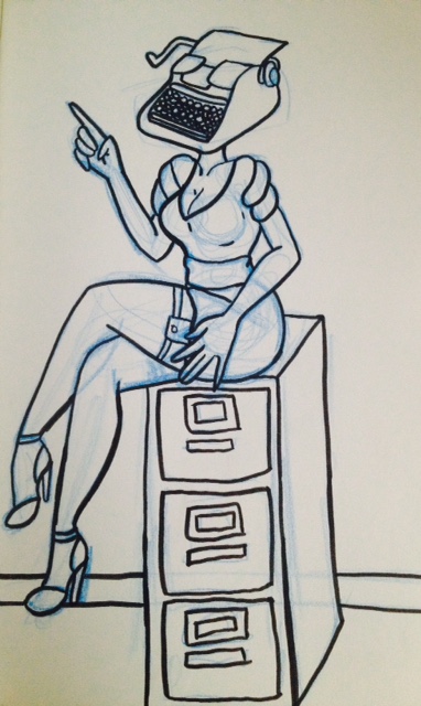 Her name is Olympia simply because that's the brand of Typewriter I modeled her head after.