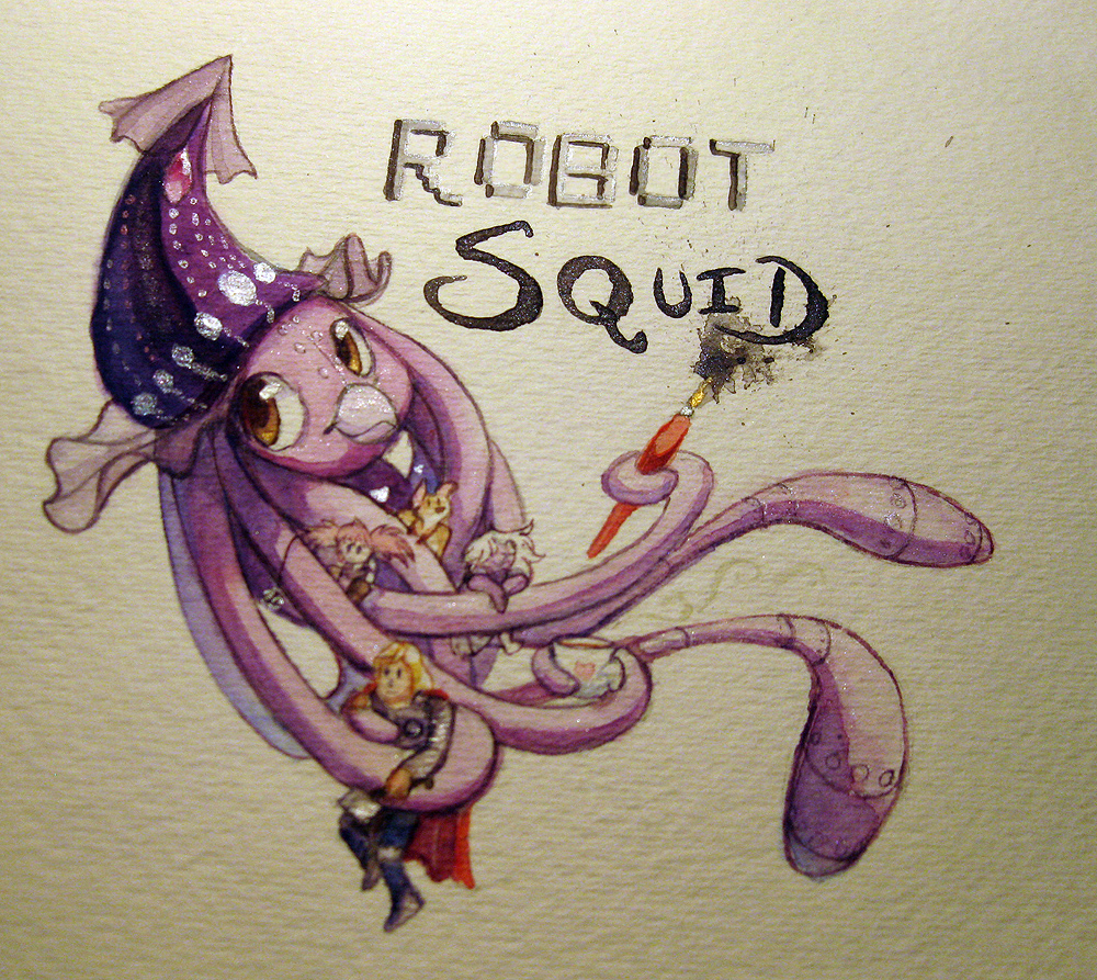Robot Squid watercolor badge