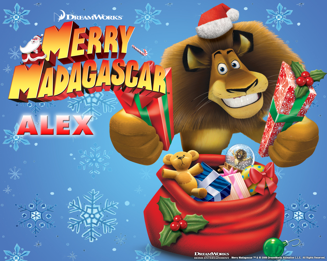Joshua and Buko the Lion are wishing everyone a Merry Christmas with this festive wallpaper.