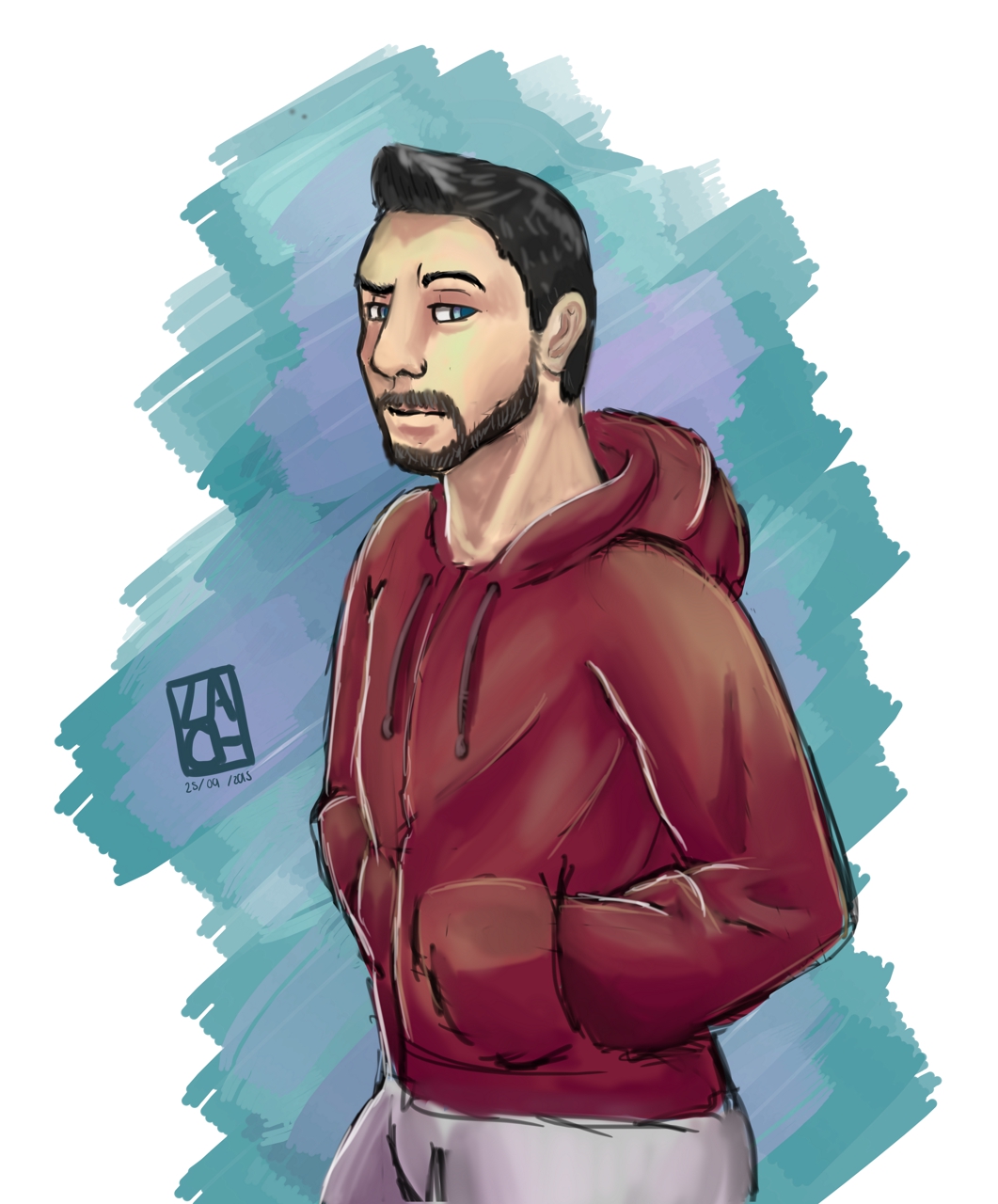 I wanted to practice and suddenly... BOOM, Bearded guy with white short and a red hoodie came to my mind xD