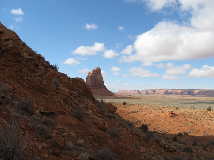 And that mesa in the background keeps going on, and it becomes another familiar landmark that many know. About 60 miles away from me is Monument Valley, hidden behind some hills and that mesa.