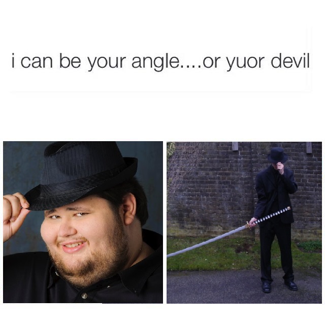 - People posing in dark clothes and edged weapons like swords, katanas, knives (often weaboos)