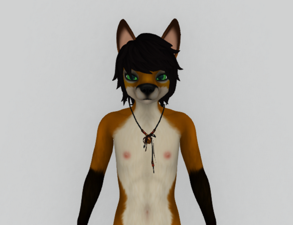 Bottom half is a normal fox with the sock markings up to the mid-thighs.