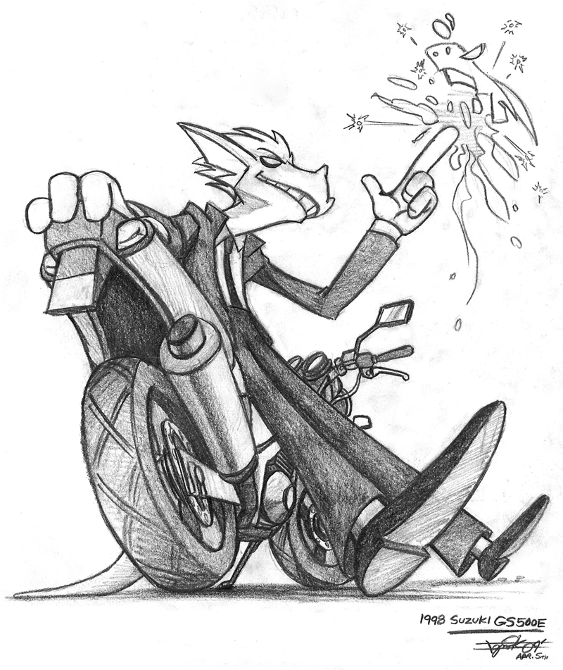 kutztowndragon helped me figure out some motorcycle design stuff for a project I was workin on, cause he knows about all that shit. In the end the project ended up not having any bikes in it at all, so I decided to do this.OOoo... perspective. How unlike me.