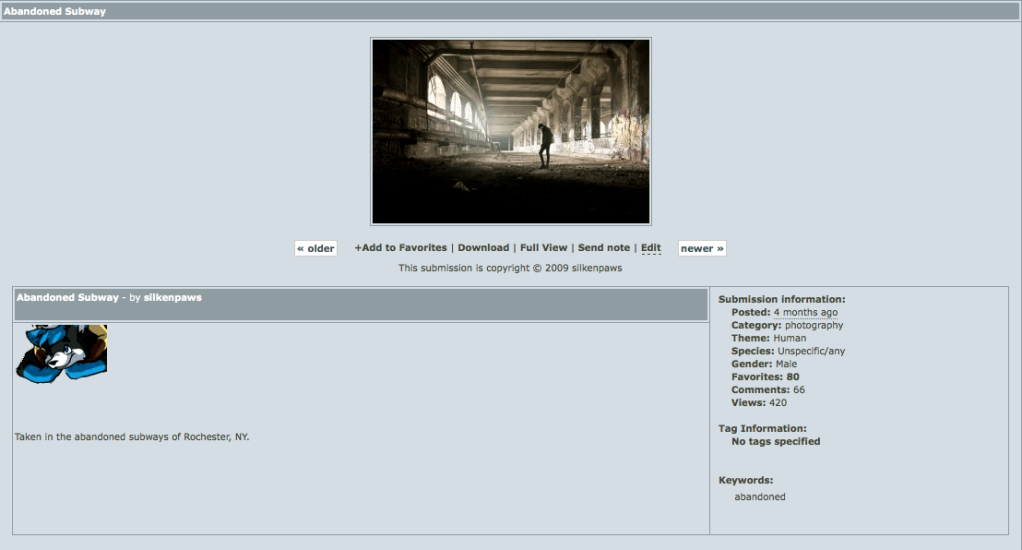 Nice. I've always loved shots that are a bit more industrial. Like abandoned warehouses and such. Subways make for a interesting mix of both lighting and that industrial concrete feeling. I personally would love to see more shots like this. The only things I usually find are abandoned sections of buildings, old railway cars, and empty parking garages to shoot in. On occasions I have a friend that likes to rebuild floors of buildings into studios, so I get a shot or two of a half stripped floor with its piping exposed, the dust illuminating from the early morning or late evening light, with concrete pillars holding it all together.