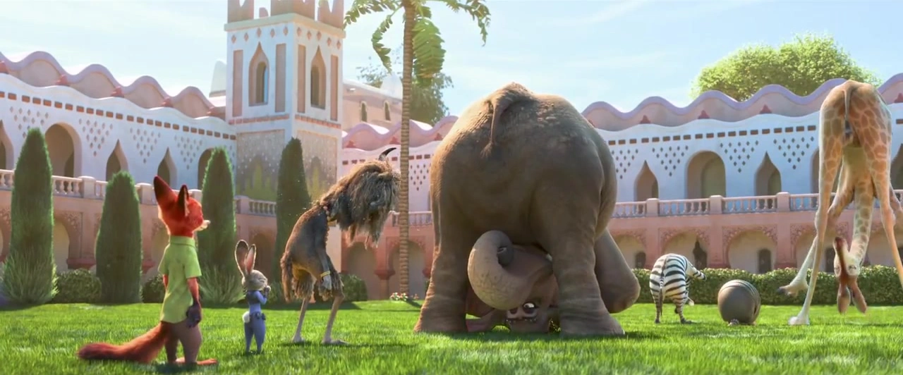 How about Judy Hopps being at that Naturalist place, and doing that bending over pose that the elephant Nangi did when they first meet her?