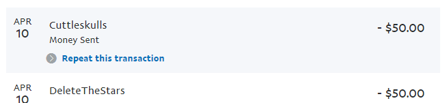 Sure thing! The paypal to send money to is chillout5555[at]aol.com and the total is $50 whenever you get the chance. Thank you so much <3