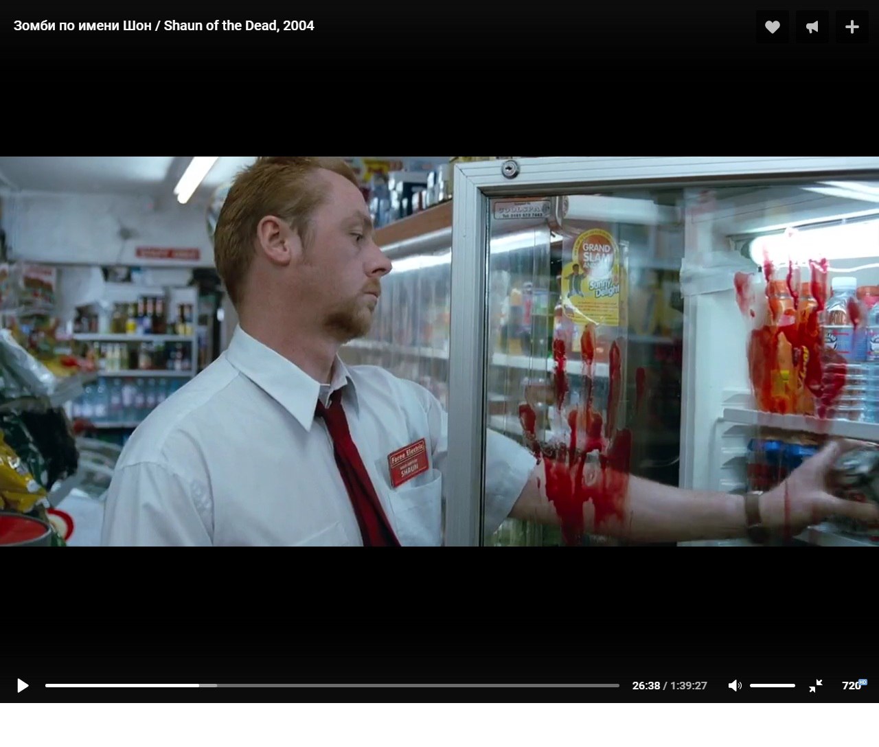 3) «Зомби по имени Шон» (Shaun of the Dead). Шон. Шикарная комедия про этого самого Шона, где в названии отсылка к тому, что он живёт в рутине как самый настоящий зомби. А когда начинается зомби-апокалипсис и он "рутинно" начинает свой день с похода в магазин за колой, мороженкой и газетой - он даже не замечает, что на улице ходят мертвяки (одному "бывшему" попрошайке он даже мелочь кидает) и в магазине не замечает сие следов от лап, и чуть не подскользнулся на кровавом месиве, когда стал идти к кассе х)