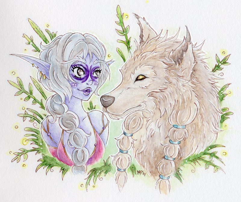 "...there was an elf, and there was a wolf." First practice with my watercolors! :3