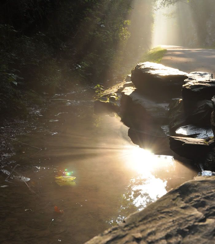 A small pond that sits by the path. Its always there, yet there is really no way for any water to get to it. Maybe from an underground spring? The pond is only a few inches deep, and it even has fish in it!