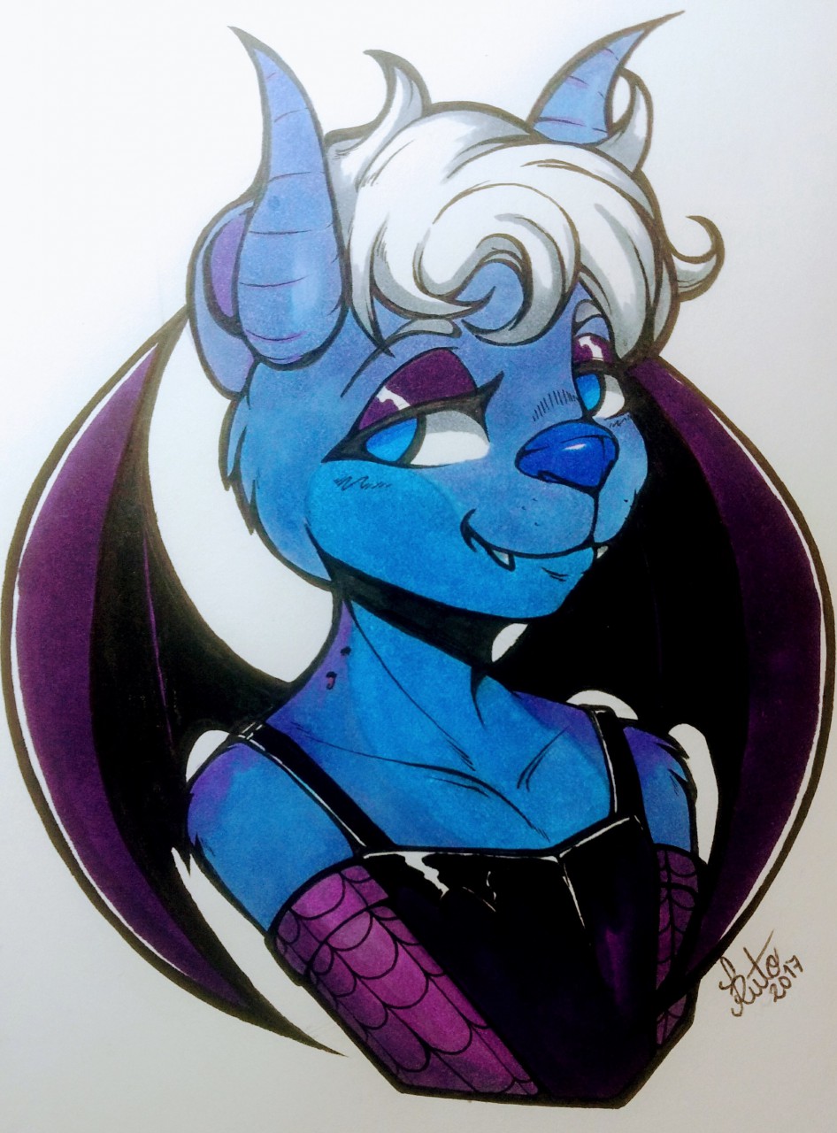 marius white hair blue fur otter sea or river i never really know vampire incubus fangs wings what in tarnation okay hes cute look st his little face and horns ahem purple latex arm stockings corsetReport this content