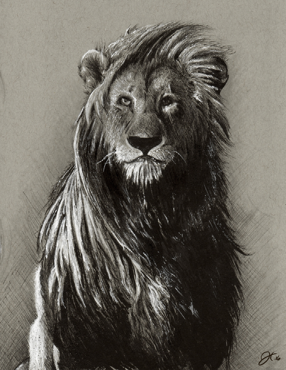 A piece I'm really happy with, on toned paper and with mixed media. a simple lion i drew that i wanted to show in a basic but beautiful pose. i love images like this and thus i drew it. i wanna do more stuff like this in the future for 2018.