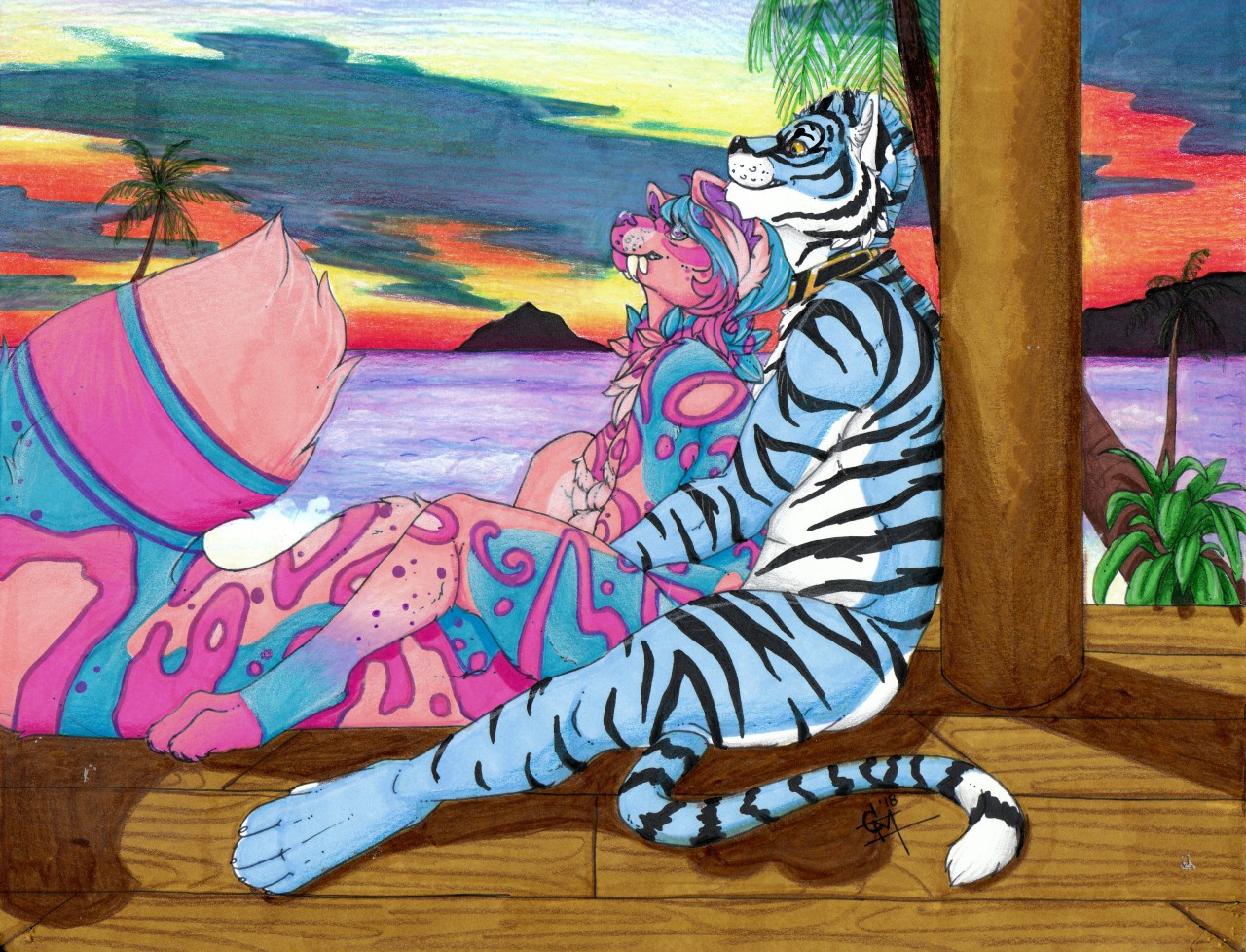 ych couple feline chubby female male hawaii multimedia traditional anthro anthropomorphic furry fursonaReport this content