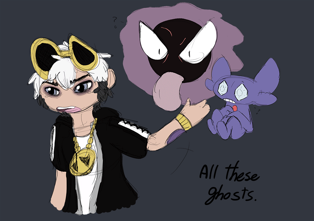 Guzma, Ghastly, Sableye © Pokemon, Nintendo