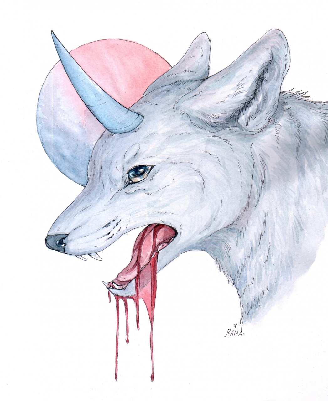 watercolour art unicorn paint blood wolf fantasyReport this content