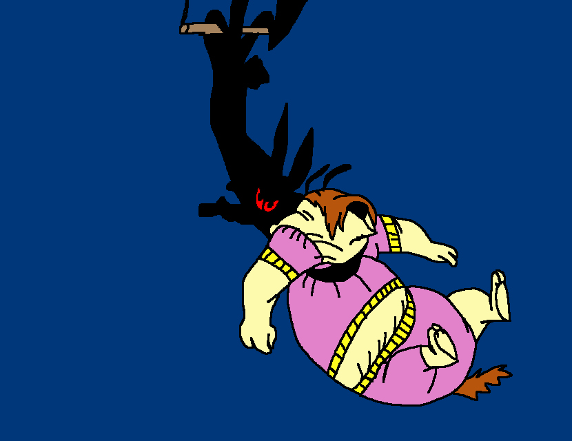 Out of nowhere, a shadowy creature swings down on a trapeze and grabs Sam.