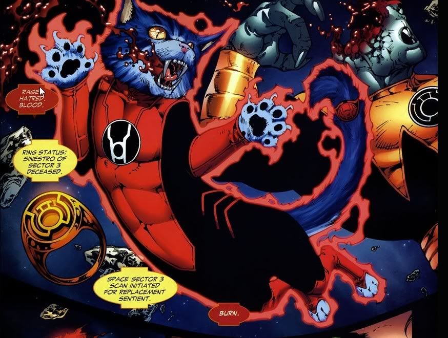 Then, I saw that there already WAS a ticked off kitty in the Red lantern Corps, and that clinched it for me. The coincidence was too good NOT to do, sine this is just a bunch of gag drawings.