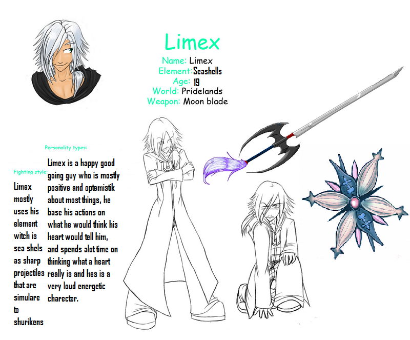 and yes i did desing him and the keyblade all by myself but i had wounderful artists drawing him out but yes keyblade/weapon sea shells everything is desinged by me