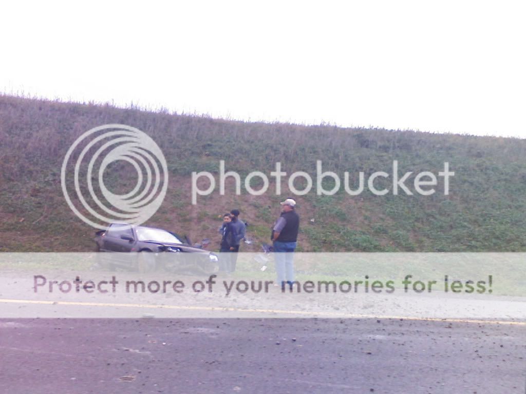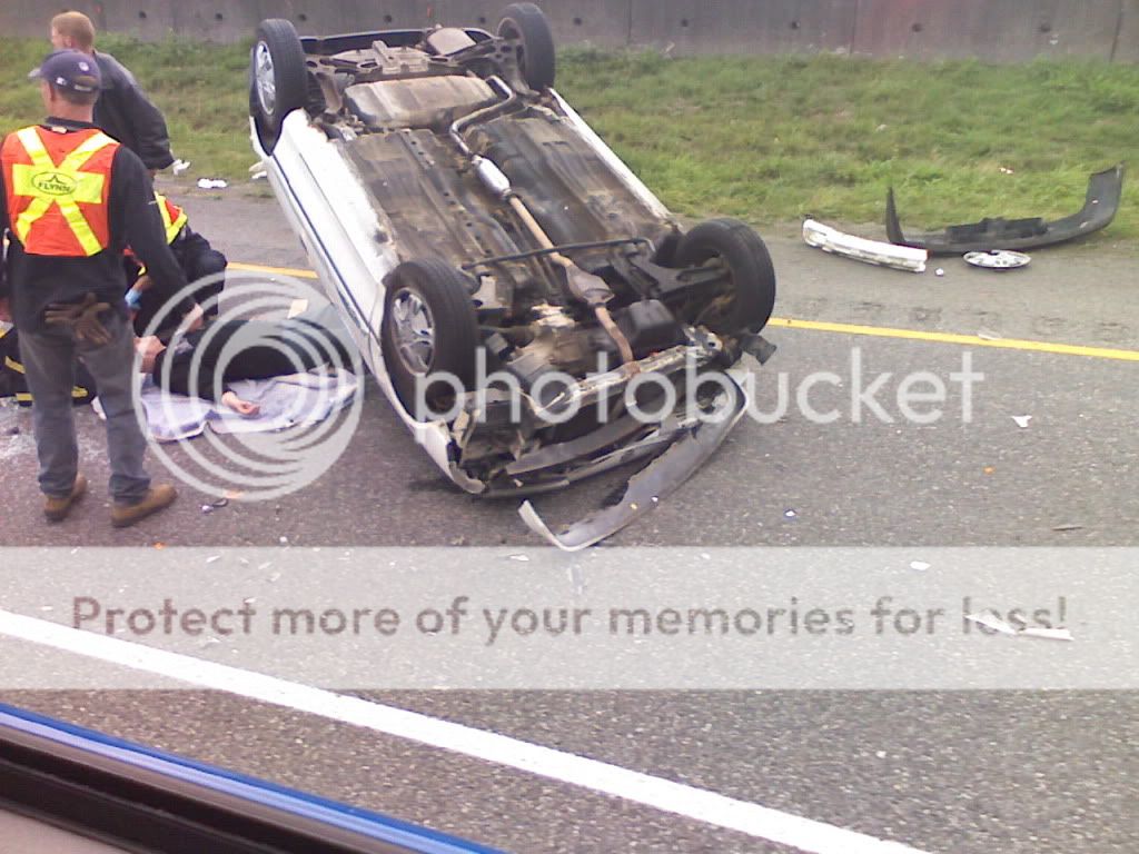 This other little car here http://i379.photobucket.com/albums/.....tyFox/hwy1.jpg cut off another truck, clipping his bumper and ended up rolling.