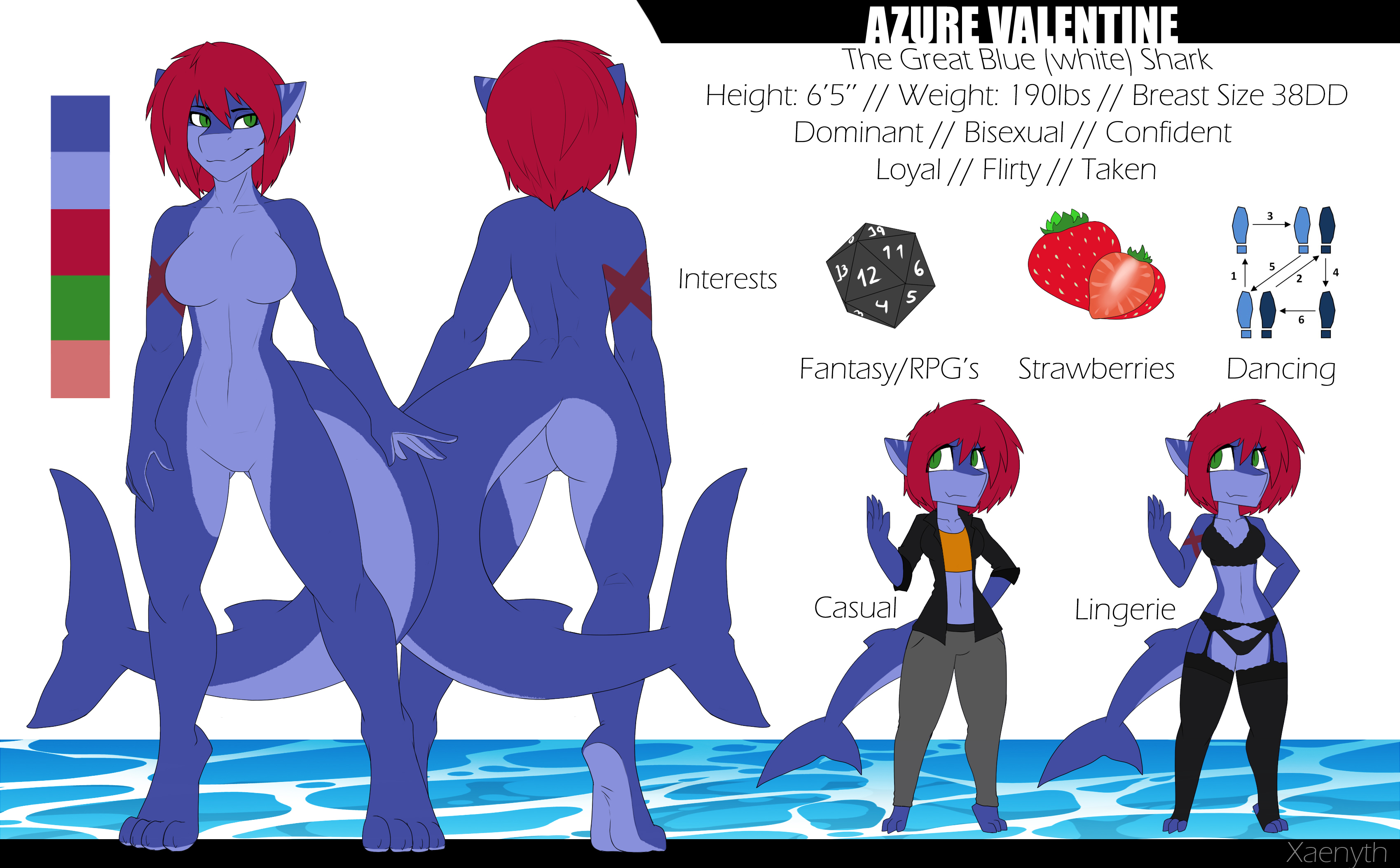 Ref-sheet of Azure Valentine done by Xaenyth.