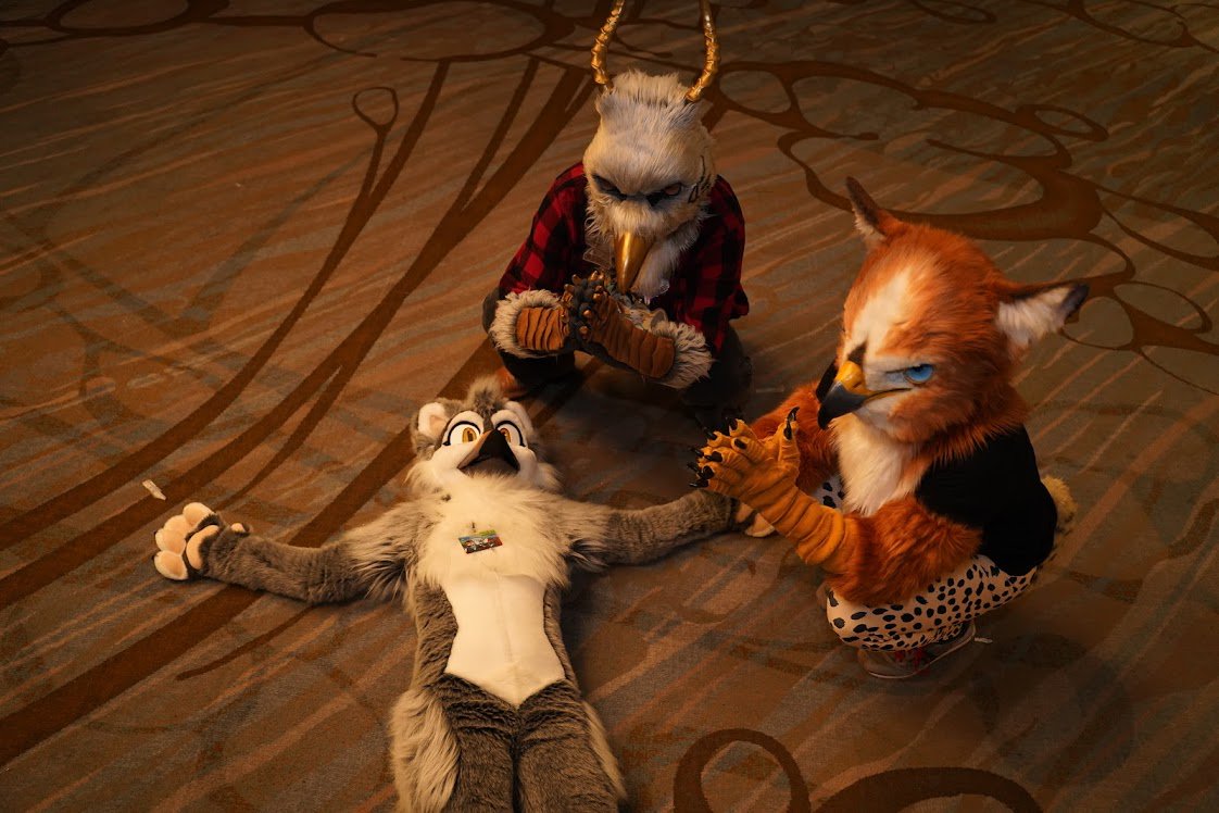 Snowy got pretty tired at her first con with a fullsuit and needed a break. Burnide and I naturally had to give her our energy.