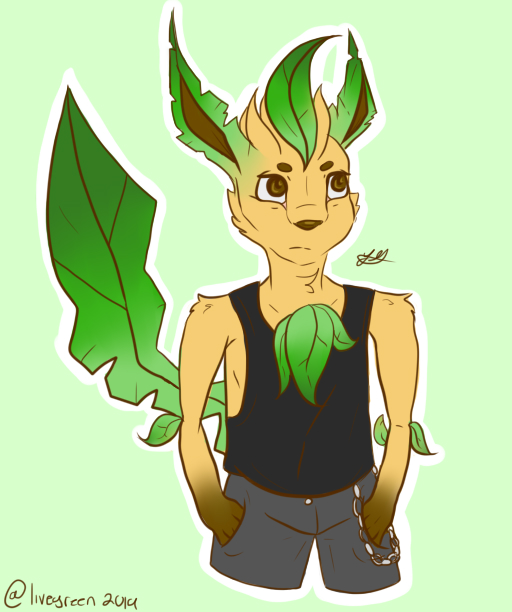 leafon trade arttrade tradesopen pokemon grasstype eeveelution male leaves flatcolor wacom sai sai2 livegreenReport this content