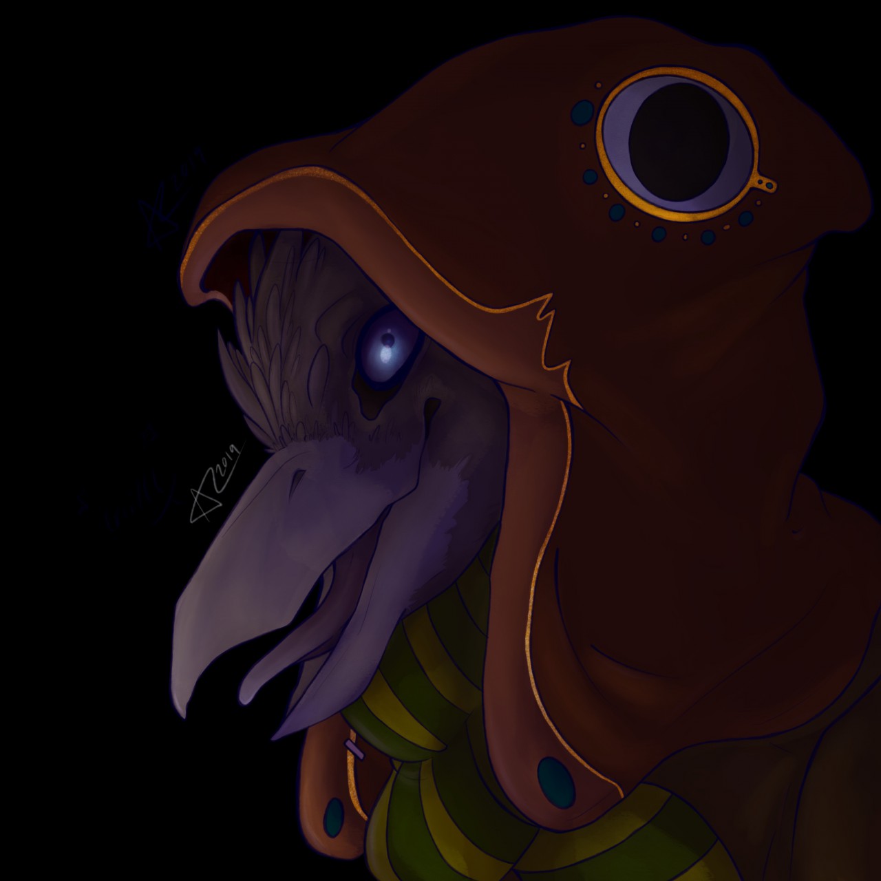 kenku dnd dd dungeons dragons crow bird avians avain rogue hood beak toot tongue dark chirp head headshot maleReport this content