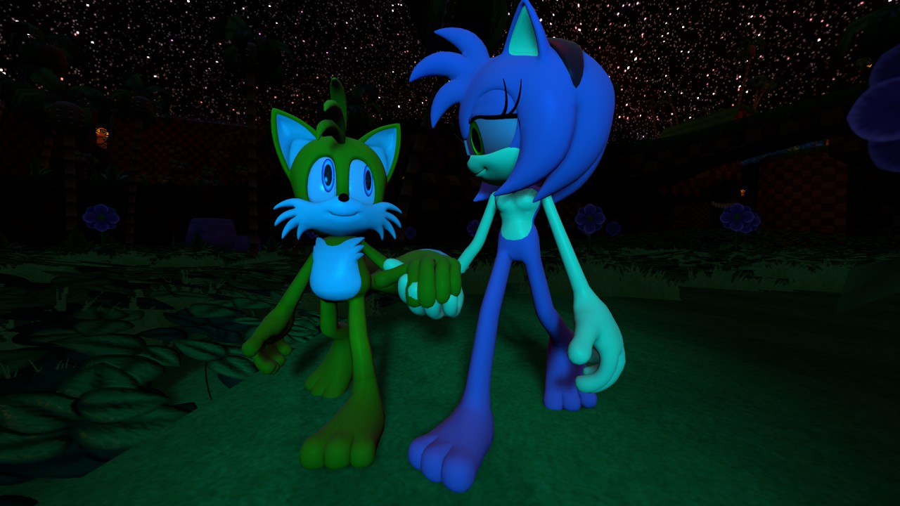 Yep, is another TailsxAmy pic. Why deh hell would I ship these two? Idk all I can think of is, well Sonic has Sally so Amy might as well go for second banana. Always depicted stuff like this as teh characters are older and stuff, I just like using these kind of models more than Kabalmystics' stuff. Besides, SEGA has completely thrown all their Sonic lore out the window these days. For all I know Cream could actually be in her 40's dealing with dwarfism or something.