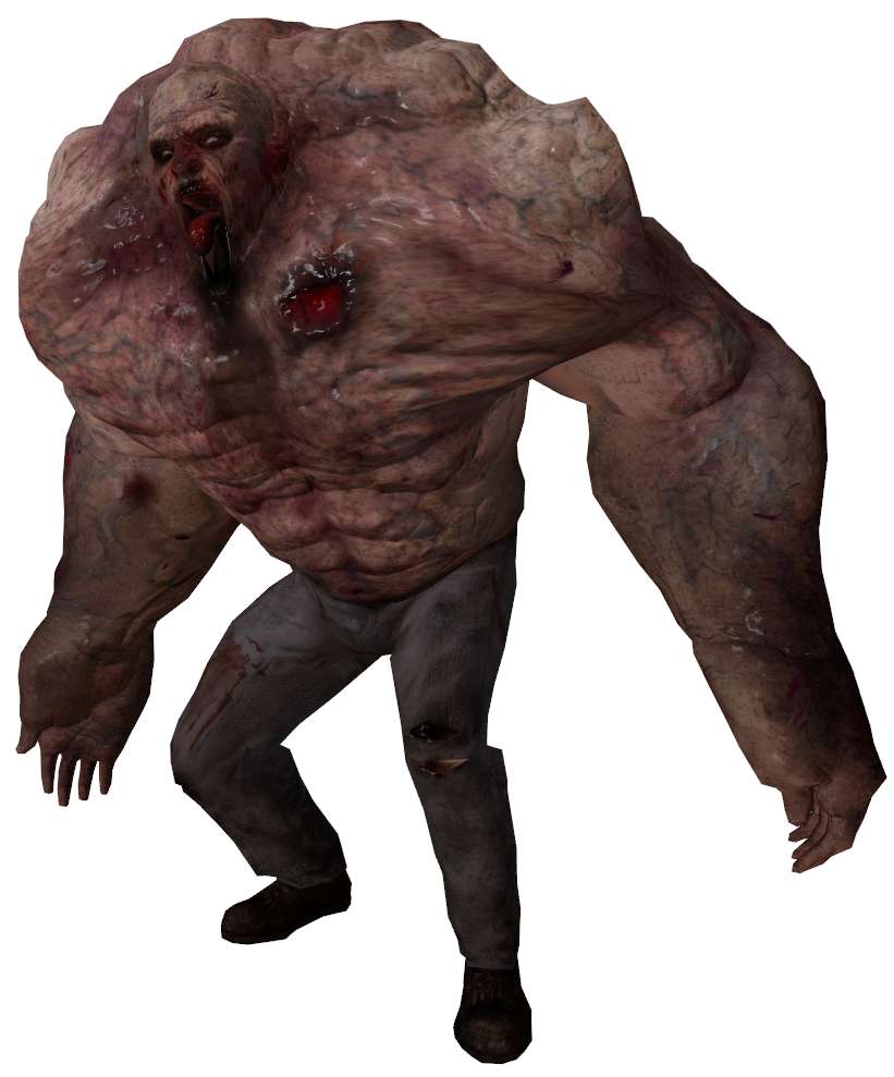 It's more like he literally has no neck and his chin is attached to his lower jaw, hence it's always open and his tongue dangles.
