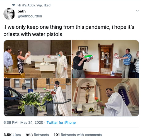 "If we keep one thing from this pandemic, I hope its priests with water pistols"