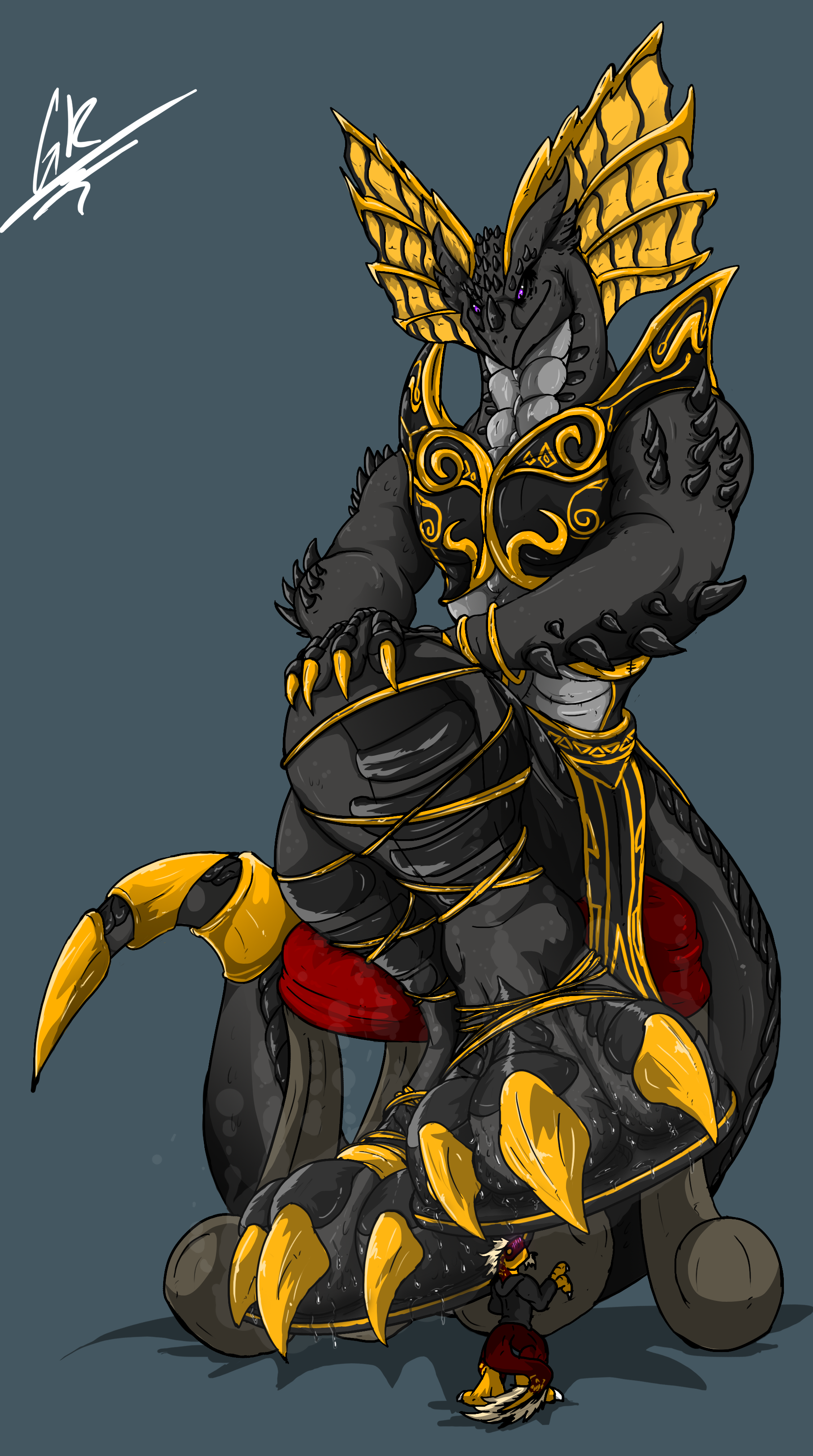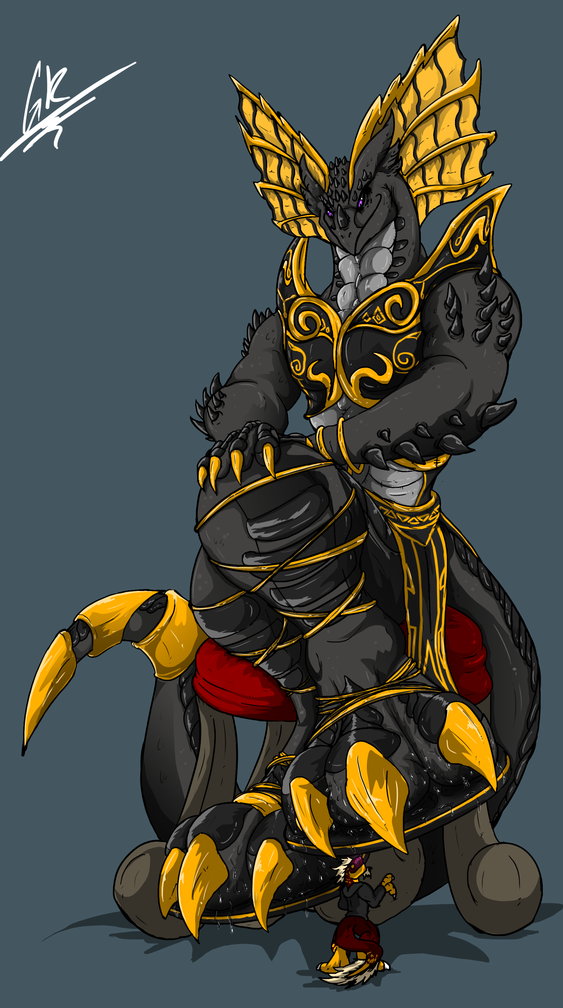 killthesergal giving me permission to upload it now. His big Empress having the smol raptor lick her sandals clean. o3o/
