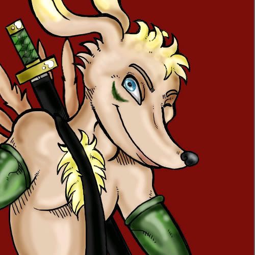 Here is Satosuke's avatar commission! He didn't request a particular expression, just wanted his sword to be in it, so I drew Satosuke being kind of cocky and winking at the viewer with his sword sheathed behind his back.