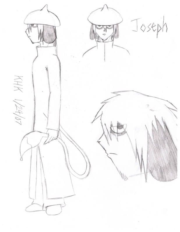 Joseph is an oddity in the group; usually quiet, has a cold stare, eats very little (Can you say "emo"?). He came to the group as a wanderer of sorts and for whatever reason decided to join. Despite seeming to be withdraw, his mood changes in battle, even to a severe, psychotic degree. Being an artist by nature, he creates various combinations with his own and his teamates' attacks (such as creating additional bones for Bonz to throw, creating black holes to redirect attacks, and even, in severe cases, using his own blood to create a scythe). Unbeknownst to everyone else, including his teammates, Joseph harbors a dark secret from his past....