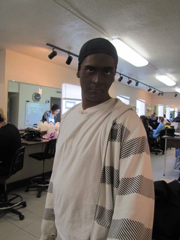 anyway, this was my partner in cosmetic make-up. We had to make them into a celebrity icon and a race change. I turned him into Jon Stewart.