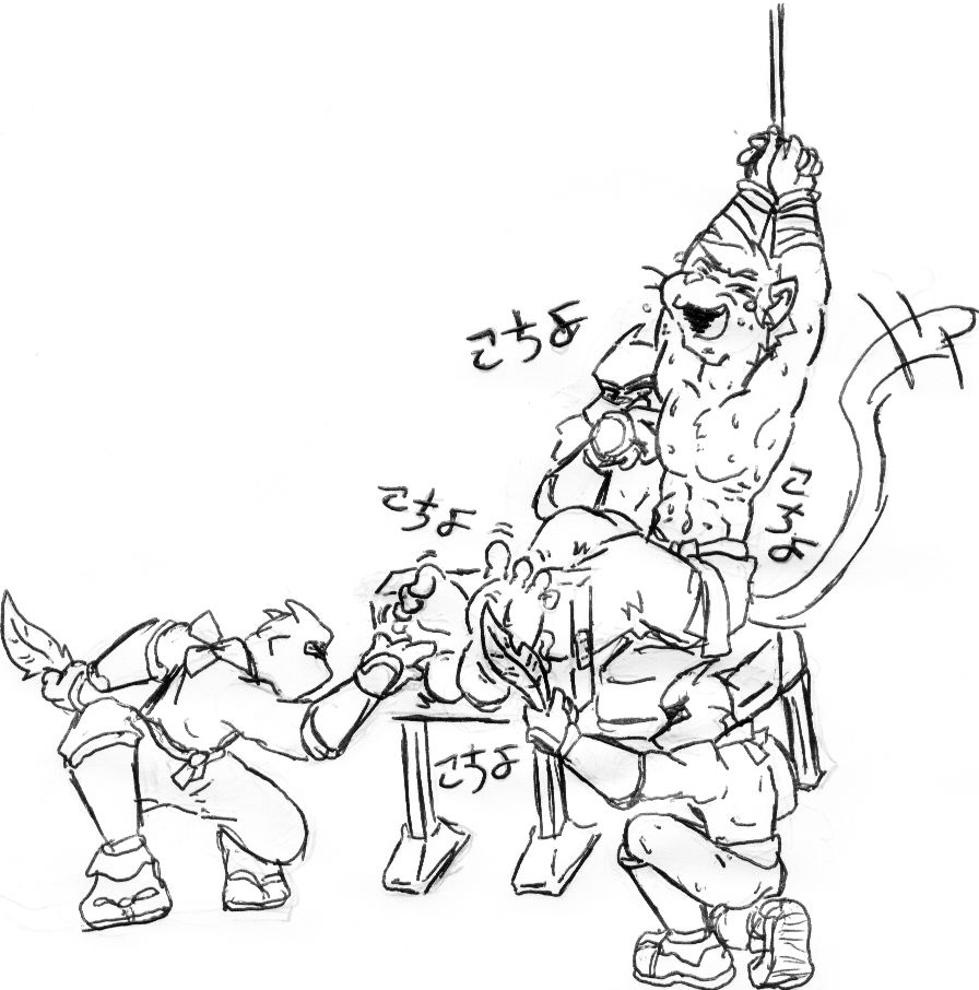 dlpeattie http://www.furaffinity.net/user/dlpeattie/He wanted Usagi Yojimbo tickle tortured for info in the Samurai Cats dungeon