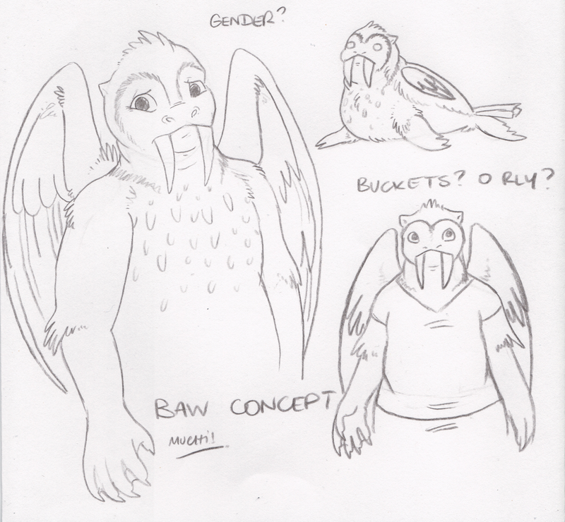 Baw on Furcadia is a combination of owl and walrus... But didn't know how to mix those... So I was free to design the character xD