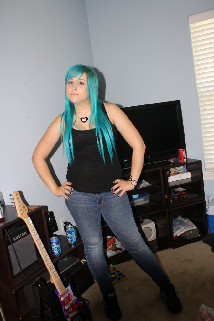My hair is an "Atomic Turquoise" because 3 of the near by Sally's was out of the "Cobalt Blue". Oh well maybe next time. Got my 18"'s in(: