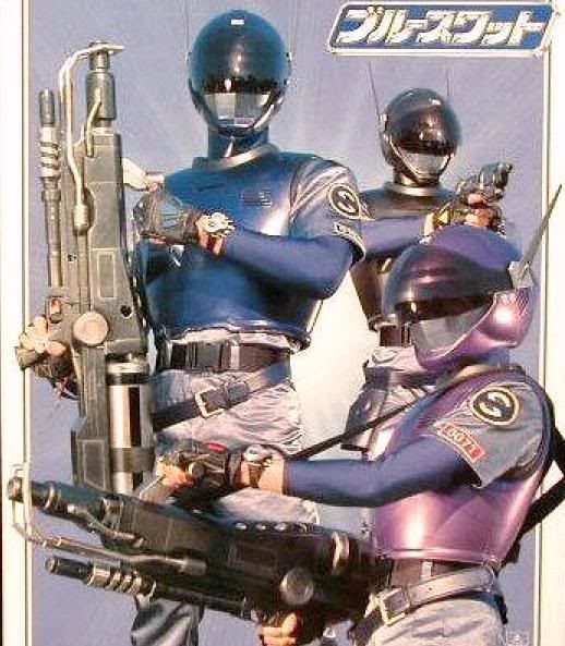 This is a picture of the heroes of the Metal-Hero series, "Blue-SWAT".
