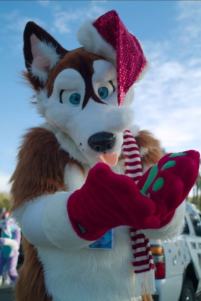 Sage_Jackal's tale of woe.. He'd lost his fursuit handpaw(s) at some point, and I suggested improvising with some Christmas Paw Stockings.