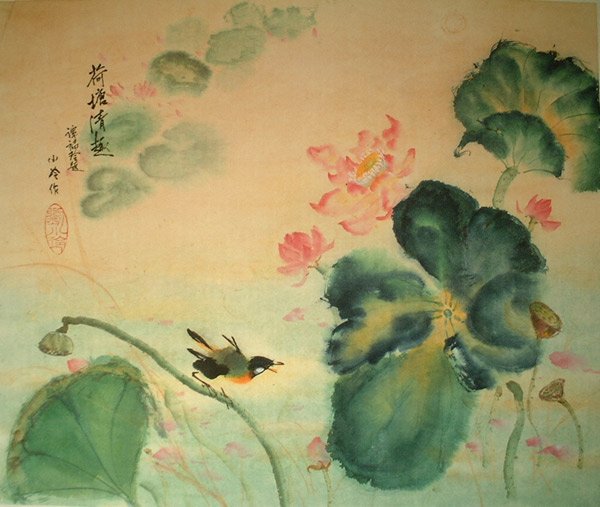 a loveley skyscape could be a cool background-or maybe him over some sort of lake or waterfall maybe hints of lotus or some flora....or somthing very vague but effective such as this http://www.dorothychan.com/gallery/lotuspond.jpg