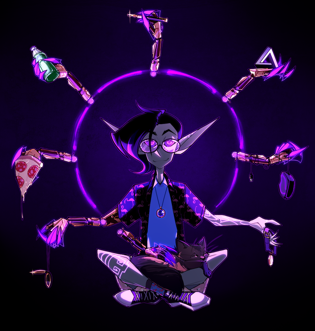 goblin magic mechanical_arm steampunk multiple_hands cat pocket_watch pizza soda pen penrose_triangle gaming_mouse collar look_at_this_esoteric_fucker_in_his_shitlord_outfit please_dont_bully_me_i_wear_that_exact_thing_every_single_day maleReport this content