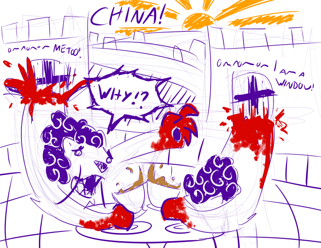 Maybe I should do 4 screen prints of the Homestuck kids or the Troll Romance Quadrants. The current assignment's driving me up the wall and I drew some lions being eaten by windows and making a toast with teacups at the Great Wall of China. .... Yeahhhhh, I think I'll carve some unicorns in my extra woodblock instead.