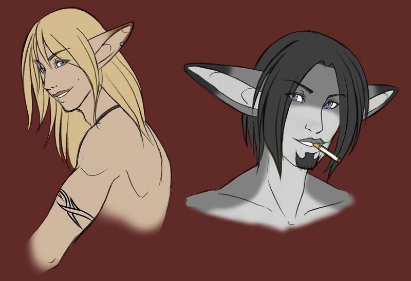 I could not, for the life of me, think of a pose for these two, so they got a rather boring, static pose that I'm really not a fan of... So, to make up for it, I did to flat-color busts! ;__; Because I suck and fail at poses. ffff.