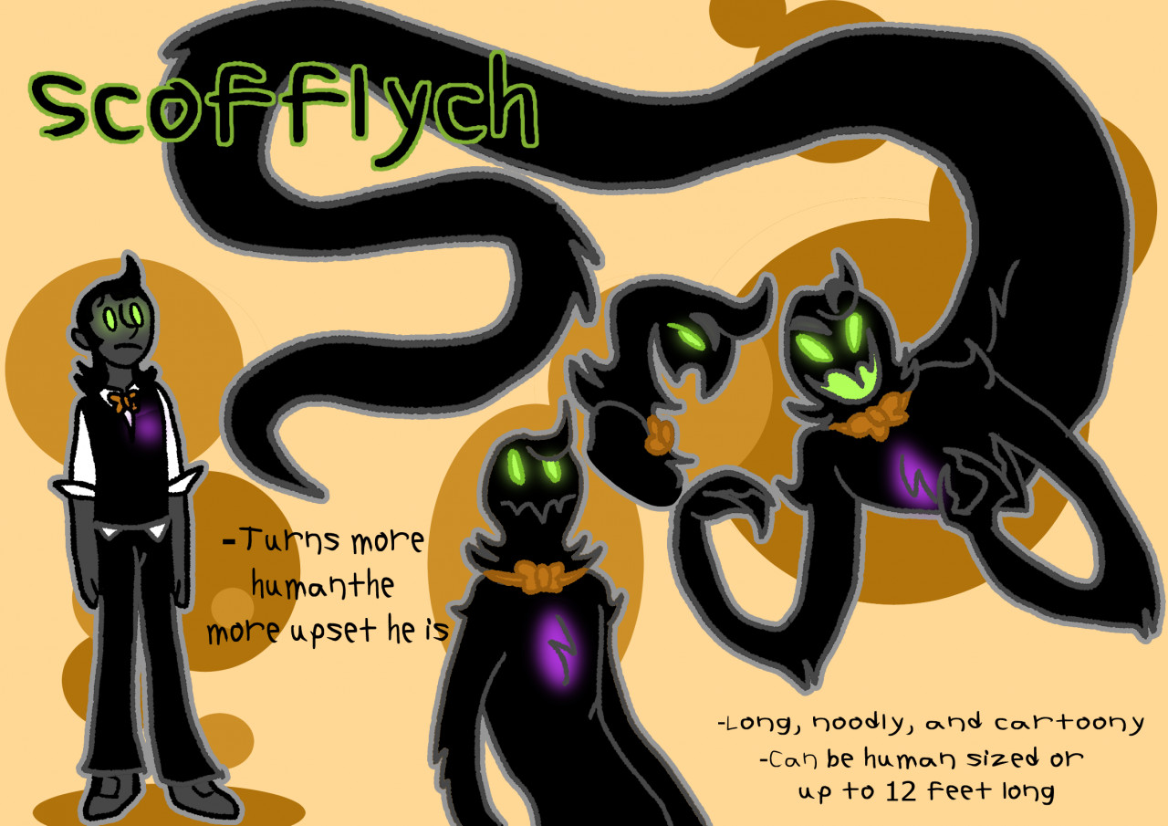 Scofflych was the son of a rich family in louisiana in the early 1900s. He was working as a city contract negotiator while dating the daughter of another rich family, a half-fae witch. Scoff unknowingly took up helping with a contract that would have removed ownership of the company his fiance's family ran. She did not take it well and, assuming backstabbing and infidelity, cursed him to become the "parasite" she accused him of being. He became a ghostly, soul-stealing, blood-drinking vampire-owl... thing, killing his own parents and the curse sinking his manor and land into an dark swamp.