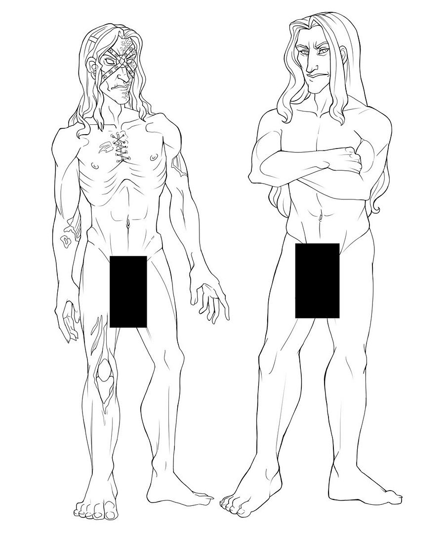 He used to have some bone on his forehead showing through, but I nixed that from his design due to too much shit on his face. If his straps are removed, however, he has the "hangjaw" look. Additionally, has some more rottage elsewhere on his body: http://img.photobucket.com/albums/v.....inkscensor.jpg